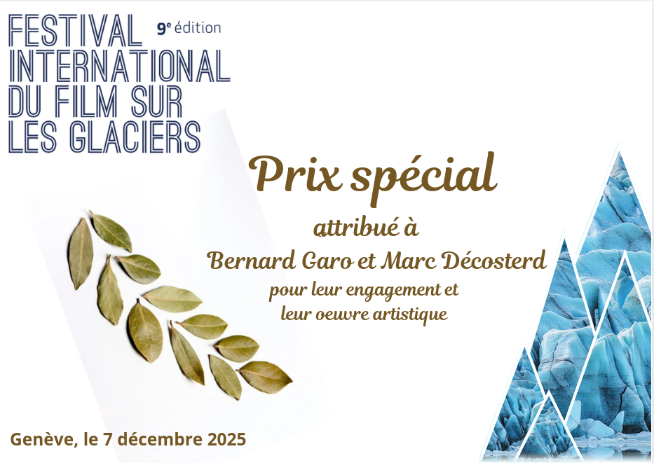 Le Festival International du Film sur les Glaciers a attribué un prix spécial à Marc Décosterd et Bernard Garo pour leur engagement et leur œuvre artistique.